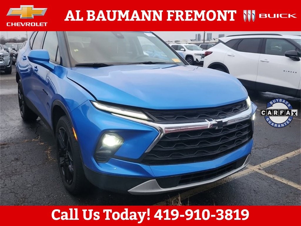 Recent Arrival! Odometer is 9464 miles below market average! Clean CARFAX.Riptide Blue Metallic 2024 Chevrolet Blazer LT FWD 4D Sport Utility 2.0L Turbocharged 9-Speed Automatic with Overdrive FWDONE OWNER CLEAN CARFAX!!Car shopping is sometimes inconvenient and stressful, and we want to take the hassle out of this all-too-common experience. If youâre interested in more convenience, less frustration and a process that works efficiently to meet your needs as a customer. Al BAUMANN AUTO GROUP. The Best Price Up Front Cash Offers For Any Trade-In Multiple Financing Quotes In Minutes A Team Of Dedicated Salespeople.CALL,419-332-8236 or {1-866-330-3601}, 1st & 2nd Row All-Weather Floor Liners (LPO), Adaptive Cruise Control, Black Roof-Mounted Side Rails, Convenience Package, Driver Confidence Package, Enhanced Automatic Emergency Braking, Floor Liner Package (LPO), Inside Rear-View Auto-Dimming Mirror, Integrated Cargo Liner (LPO), Lane Change Alert w/Side Blind Zone Alert, Preferred Equipment Group 2LT, Rear Cross Traffic Alert, Rear Park Assist w/Audible Warning, Rear Power Programmable Liftgate, Universal Home Remote, Wireless Charging, 170 Amp Alternator, 3.47 Final Drive Axle Ratio, 4-Way Manual Front Passenger Seat Adjuster, 4-Wheel Disc Brakes, 6 Speakers, 6-Speaker Audio System Feature, 8-Way Power Driver Seat Adjuster, ABS brakes, Air Conditioning, Alloy wheels, AM/FM radio: SiriusXM with 360L, Apple CarPlay/Android Auto, Auto High-beam Headlights, Automatic temperature control, Black Lug Nut & Wheel Lock Kit (LPO), Brake assist, Bumpers: body-color, Child-Seat-Sensing Airbag, Compass, Delay-off headlights, Driver door bin, Driver vanity mirror, Dual front impact airbags, Dual front side impact airbags, Electronic Stability Control, Emergency communication system: OnStar and Chevrolet connected services capable, Four wheel independent suspension, Front & Rear Black Bowties, Front anti-roll bar, Front Bucket Seats, Front Center Armrest, Front dual zone A/C, Front reading lights, Fully automatic headlights, Gloss Black Emblem Kit (LPO), Heated door mirrors, Heated Driver & Front Passenger Seats, Heated front seats, Illuminated entry, Knee airbag, Leather Shift Knob, Low tire pressure warning, Occupant sensing airbag, Outside temperature display, Overhead airbag, Overhead console, Panic alarm, Passenger door bin, Passenger vanity mirror, Power door mirrors, Power Driver Lumbar Control, Power driver seat, Power steering, Power windows, Premium audio system: Chevrolet Infotainment 3 Plus, Premium Cloth Seat Trim, Radio data system, Radio: Chevrolet Infotainment 3 Plus System, Rear anti-roll bar, Rear reading lights, Rear seat center armrest, Rear window defroster, Rear window wiper, Remote keyless entry, Ride & Handling Suspension, Security system, SiriusXM w/360L, Speed control, Speed-sensing steering, Split folding rear seat, Spoiler, Steering wheel mounted audio controls, Tachometer, Telescoping steering wheel, Tilt steering wheel, Traction control, Trip computer, Variably intermittent wipers, Voltmeter, Wheels: 18 Grazen Metallic Aluminum, Wheels: 20 Gloss Black Aluminum, 1st & 2nd Row All-Weather Floor Liners (LPO), Adaptive Cruise Control, Black Roof-Mounted Side Rails, Convenience Package, Driver Confidence Package, Enhanced Automatic Emergency Braking, Floor Liner Package (LPO), Inside Rear-View Auto-Dimming Mirror, Integrated Cargo Liner (LPO), Lane Change Alert w/Side Blind Zone Alert, Preferred Equipment Group 2LT, Rear Cross Traffic Alert, Rear Park Assist w/Audible Warning, Rear Power Programmable Liftgate, Universal Home Remote, Wireless Charging.