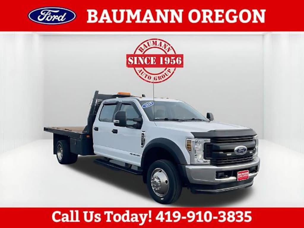 CARFAX One-Owner. Clean CARFAX. Oxford White 2019 Ford F-450SD XL DRW Power Stroke 6.7L V8 DI 32V OHV Turbodiesel 4D Crew Cab/Chassis TorqShift 6-Speed Automatic 4WD We are open and ready to serve you! Shop safely and conveniently from the comfort of your home. Contact us today to schedule your home delivery ! Baumann Ford Oregon Toledo Ohio Perrysburg Bowling Green Rossford Curtice Oak Harbor Woodville Monroe Michigan Temperance Erie Repair Facility Body Shop Collision Center Parts Service New Used Leasing Low Payment Low Payments Ford Motorcars Automobile Auto Cars Trucks SUV Sales. FULLY DETAILED, 4WD, 4.2 Center-Stack Screen, Advanced Security Pack, Chrome Front Bumper, GVWR: 16,500 lb Payload Package, MyKey, Order Code 650A, Power Equipment Group, Power Front & Rear Side Windows, Power Locks, Radio: AM/FM Stereo/MP3 Player, Remote Keyless Entry, Snow Plow Prep Package, Steering Wheel-Mounted Cruise Control, SYNC Communications & Entertainment System, Trailer Tow Mirrors w/Power Heated Glass, XL Value Package, 4 Speakers, 4-Wheel Disc Brakes, 6-Ton Hydraulic Jack, ABS brakes, Air Conditioning, AM/FM radio, AM/FM Stereo, Brake assist, Center High-Mounted Stop Lamp (CHMSL), Delay-off headlights, Dual Alternators (Total 332-Amps), Dual front impact airbags, Dual front side impact airbags, Dual rear wheels, Front anti-roll bar, Front Center Armrest w/Storage, Front reading lights, Fully automatic headlights, HD Vinyl 40/20/40 Split Bench Seat, Outside temperature display, Overhead airbag, Overhead console, Passenger vanity mirror, Platform Running Boards, Power steering, Rear anti-roll bar, Rear reading lights, Split folding rear seat, Tachometer, Telescoping steering wheel, Tilt steering wheel, Traction control, Trailer Brake Controller, Transmission Power Take-Off Provision, Trip computer, Variably intermittent wipers, Wheels: 19.5 Argent Painted Steel, 4WD, 4.2 Center-Stack Screen, Advanced Security Pack, Chrome Front Bumper, GVWR: 16,500 lb Payload Package, MyKey, Order Code 650A, Power Equipment Group, Power Front & Rear Side Windows, Power Locks, Radio: AM/FM Stereo/MP3 Player, Remote Keyless Entry, Snow Plow Prep Package, Steering Wheel-Mounted Cruise Control, SYNC Communications & Entertainment System, Trailer Tow Mirrors w/Power Heated Glass, XL Value Package.