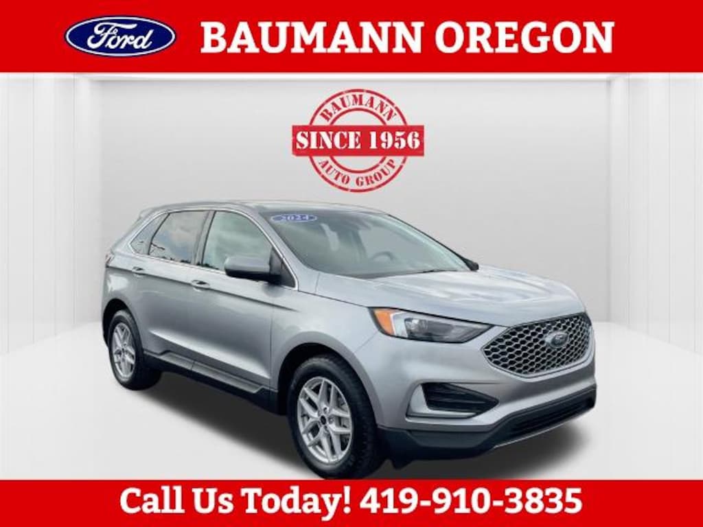Priced below KBB Fair Purchase Price! CARFAX One-Owner. Iconic Silver Metallic 2024 Ford Edge SEL EcoBoost 2.0L I4 GTDi DOHC Turbocharged VCT 4D Sport Utility 8-Speed Automatic AWD We are open and ready to serve you! Shop safely and conveniently from the comfort of your home. Contact us today to schedule your home delivery ! Baumann Ford Oregon Toledo Ohio Perrysburg Bowling Green Rossford Curtice Oak Harbor Woodville Monroe Michigan Temperance Erie Repair Facility Body Shop Collision Center Parts Service New Used Leasing Low Payment Low Payments Ford Motorcars Automobile Auto Cars Trucks SUV Sales. ONE OWNER, AUTO CHECK NO ACCIDENTS, BLUETOOTH/HANDS FREE CELL PHONE, REAR BACK UP CAMERA, NON-SMOKER, FULLY DETAILED, FRESH OIL CHANGE, AWD, Equipment Group 201A, 3.80 Axle Ratio, 4-Wheel Disc Brakes, 6 Speakers, ABS brakes, ActiveX Trimmed Heated Bucket Seats, Air Conditioning, Alloy wheels, AM/FM radio: SiriusXM with 360L, AM/FM Stereo, Auto High-beam Headlights, Auto-dimming Rear-View mirror, Automatic temperature control, Brake assist, Bumpers: body-color, Compass, Delay-off headlights, Driver door bin, Driver vanity mirror, Dual front impact airbags, Dual front side impact airbags, Electronic Stability Control, Emergency communication system: SYNC 4 911 Assist, FordPass Connect, Four wheel independent suspension, Front anti-roll bar, Front Bucket Seats, Front Center Armrest w/Storage, Front dual zone A/C, Front reading lights, Fully automatic headlights, Heated door mirrors, Heated front seats, Illuminated entry, Knee airbag, Leather steering wheel, Low tire pressure warning, Occupant sensing airbag, Outside temperature display, Overhead airbag, Overhead console, Panic alarm, Passenger door bin, Passenger vanity mirror, Power door mirrors, Power driver seat, Power passenger seat, Power steering, Power windows, Rear anti-roll bar, Rear Parking Sensors, Rear reading lights, Rear seat center armrest, Rear window defroster, Rear window wiper, Remote keyless entry, SiriusXM w/360L, Speed control, Speed-Sensitive Wipers, Split folding rear seat, Spoiler, Steering wheel mounted audio controls, SYNC 4A w/Enhanced Voice Recognition, Tachometer, Telescoping steering wheel, Tilt steering wheel, Traction control, Trip computer, Variably intermittent wipers, AWD, Equipment Group 201A.