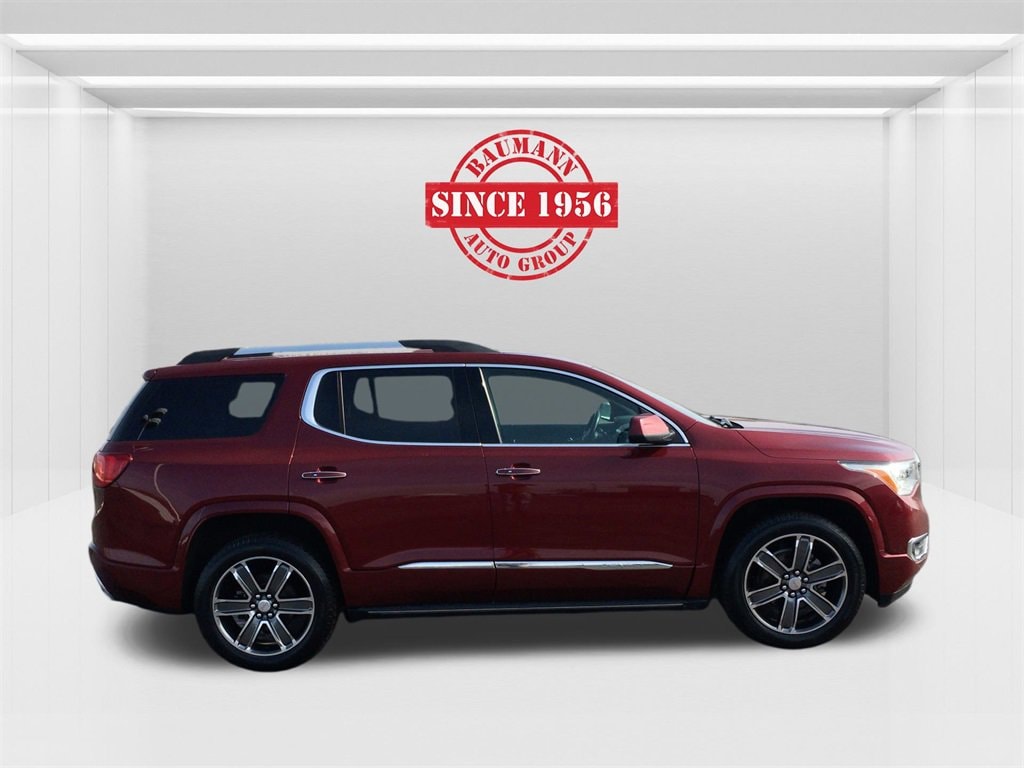 Recent Arrival! Odometer is 25868 miles below market average! Clean CARFAX.Crimson Red Tintcoat 2018 GMC Acadia Denali 4D Sport Utility 3.6L V6 SIDI DOHC VVT 6-Speed Automatic AWDAWD, Jet Black Leather, 3.16 Axle Ratio, 3rd Row All-Weather Floor Liner (LPO), 3rd row seats: split-bench, 4-Wheel Disc Brakes, 6-Passenger (2-2-2 Seating Configuration), 8 Speakers, ABS brakes, Air Conditioning, All-Weather Floor Liner (LPO), Alloy wheels, AM/FM radio: SiriusXM, Apple CarPlay/Android Auto, Auto High-beam Headlights, Auto-dimming door mirrors, Auto-dimming Rear-View mirror, Automatic temperature control, Brake assist, Bumpers: body-color, Compass, Delay-off headlights, Driver door bin, Driver vanity mirror, Dual front impact airbags, Dual front side impact airbags, Dual SkyScape 2-Panel Power Sunroof, Electronic Cruise Control w/Set & Resume Speed, Electronic Stability Control, Emergency communication system: OnStar and GMC connected services capable, Exterior Parking Camera Rear, Floor Liner Package (LPO), Forward Automatic Braking, Four wheel independent suspension, Front anti-roll bar, Front Bucket Seats, Front Center Armrest, Front dual zone A/C, Front fog lights, Front License Plate Bracket, Front reading lights, Full Speed Adaptive Cruise Control w/Stop/Go, Fully automatic headlights, Garage door transmitter: HomeLink, Heated door mirrors, Heated front seats, Heated rear seats, Heated steering wheel, High-Intensity Discharge Headlights, Illuminated entry, Knee airbag, Low tire pressure warning, Memory seat, Navigation System, Occupant sensing airbag, Outside temperature display, Overhead airbag, Overhead console, Panic alarm, Passenger door bin, Passenger vanity mirror, Perforated Leather-Appointed Seat Trim, Power door mirrors, Power driver seat, Power Liftgate, Power passenger seat, Power steering, Power windows, Preferred Equipment Group 5SA, Premium audio system: GMC Infotainment System, Radio data system, Radio: AM/FM 8 Diagonal Color Touch Navigation, Rear air conditioning, Rear anti-roll bar, Rear reading lights, Rear window defroster, Rear window wiper, Remote keyless entry, Roof rack: rails only, Security system, SiriusXM Satellite Radio, Speed control, Speed-sensing steering, Spoiler, Steering wheel mounted audio controls, Surround Vision System, Tachometer, Technology Package, Telescoping steering wheel, Tilt steering wheel, Traction control, Trip computer, Variably intermittent wipers, Ventilated front seats, Voltmeter, Wheels: 20 x 8 Polished Aluminum (4), AWD, Jet Black Leather.
