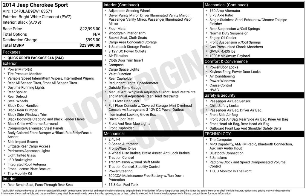 Bright White Clearcoat 2014 Jeep Cherokee Sport FWD 4D Sport Utility 2.4L I4 MultiAir 9-Speed 948TE Automatic FWD