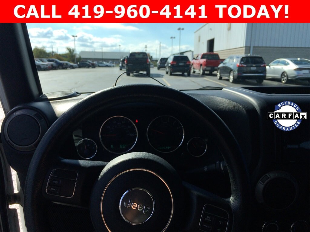 CALL 419- 732 -3148 or 419- 960- 4141, 16 x 7.0 Luxury Styled Steel Wheels, 17 x 7.5 Aluminum Wheels, 4-Wheel Disc Brakes, 8 Speakers, ABS brakes, AM/FM radio, Brake assist, CD player, Cloth Bucket Seats, Compass, Driver door bin, Driver vanity mirror, Dual front impact airbags, Electronic Stability Control, Front anti-roll bar, Front Bucket Seats, Front Center Armrest w/Storage, Front fog lights, Integrated roll-over protection, Low tire pressure warning, Normal Duty Suspension, Occupant sensing airbag, Outside temperature display, Passenger door bin, Passenger vanity mirror, Power steering, Quick Order Package 23B, Radio: Uconnect 130 AM/FM/CD/MP3, Rear anti-roll bar, Speed control, Steering wheel mounted audio controls, Sunrider Soft Top, Tachometer, Tilt steering wheel, Traction control, Trip computer, Tubular Side Steps, Variably intermittent wipers.