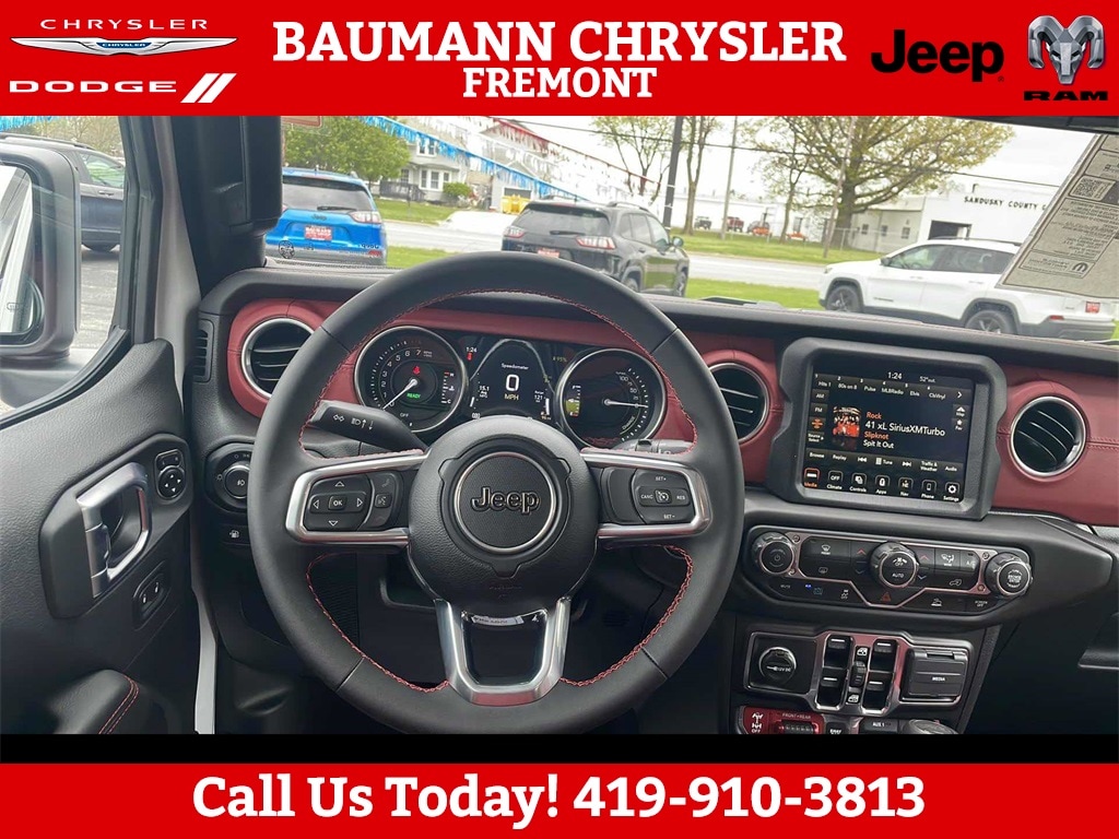 2.0L I4 DOHC, 20th Anniversary Rubicon 4xe Suspension, 4.10 Rear Axle Ratio, 7 & 4 Pin Wiring Harness, 700 Amp Maintenance Free Battery, Apple CarPlay/Android Auto, Auxiliary Switches, Class II Receiver Hitch, Corning Gorilla Glass, Integrated Off-Road Camera, Jeep Trail Rated Kit, Leather Wrapped Park Brake Handle, Leather Wrapped Shift Knob, MOPAR 3 Bar Bumper Hoop, MOPAR All-Weather Floor Mats, MOPAR Rubicon 20th Anniversary Tool Kit, Nappa Leather Seats, Navigation System, Premium Door Trim Panel, Premium Wrapped Red I/P Bezels, Quick Order Package 29T Rubicon 20th Anniversary, Red Interior Accents, Red Seat Belt, Rubicon 20th Anniversary, Rubicon 20th Anniversary Grille, Rubicon 20th Anniversary Shifter Medallion, Rubicon 20th Anniversary Side Hood Decal 4xe, Rubicon 20th Anniversary Swing Gate Plaque, Rubicon 20th Anniversary Top Hood Decal 4xe, Steel Bumper Group, Steel Front Bumper, Steel Rear Bumper, Trailer Tow & Aux Switch Group, Wheels: 17" x 7.5" Black Beadlock Capable, 4-Wheel Disc Brakes, 9 Speakers, ABS brakes, Air Conditioning, Alloy wheels, AM/FM radio: SiriusXM, Auto-dimming Rear-View mirror, Automatic temperature control, Body Color 3-Piece Hard Top, Body Color Rubicon Highline Flare, Brake assist, Compass, Delay-off headlights, Driver door bin, Driver vanity mirror, Dual front impact airbags, Dual front side impact airbags, Electronic Stability Control, Emergency communication system: SiriusXM Guardian, Freedom Panel Storage Bag, Front anti-roll bar, Front Bucket Seats, Front Center Armrest w/Storage, Front dual zone A/C, Front fog lights, Front License Plate Bracket, Front reading lights, Fully automatic headlights, Garage door transmitter, Heated door mirrors, Illuminated entry, Integrated roll-over protection, Low tire pressure warning, Occupant sensing airbag, Outside temperature display, Panic alarm, ParkView Rear Back-Up Camera, Passenger door bin, Passenger vanity mirror, Performance Suspension, Power door mirrors, Power steering, Power windows, Premium Cloth Low-Back Bucket Seats, Radio data system, Radio: Uconnect 4C Nav w/8.4" Display, Rear anti-roll bar, Rear reading lights, Rear Window Defroster, Rear Window Wiper/Washer, Remote keyless entry, Security system, Speed control, Split folding rear seat, Steering wheel mounted audio controls, Tachometer, Telescoping steering wheel, Tilt steering wheel, Traction control, Trip computer, Variably intermittent wipers, Voltmeter, Wheels: 17" x 7.5" Machined w/Black Pockets, 2.0L I4 DOHC, 20th Anniversary Rubicon 4xe Suspension, 4.10 Rear Axle Ratio, 7 & 4 Pin Wiring Harness, 700 Amp Maintenance Free Battery, Apple CarPlay/Android Auto, Auxiliary Switches, Class II Receiver Hitch, Corning Gorilla Glass, Integrated Off-Road Camera, Jeep Trail Rated Kit, Leather Wrapped Park Brake Handle, Leather Wrapped Shift Knob, MOPAR 3 Bar Bumper Hoop, MOPAR All-Weather Floor Mats, MOPAR Rubicon 20th Anniversary Tool Kit, Nappa Leather Seats, Navigation System, Premium Door Trim Panel, Premium Wrapped Red I/P Bezels, Quick Order Package 29T Rubicon 20th Anniversary, Red Interior Accents, Red Seat Belt, Rubicon 20th Anniversary, Rubicon 20th Anniversary Grille, Rubicon 20th Anniversary Shifter Medallion, Rubicon 20th Anniversary Side Hood Decal 4xe, Rubicon 20th Anniversary Swing Gate Plaque, Rubicon 20th Anniversary Top Hood Decal 4xe, Steel Bumper Group, Steel Front Bumper, Steel Rear Bumper, Trailer Tow & Aux Switch Group, Wheels: 17" x 7.5" Black Beadlock Capable.