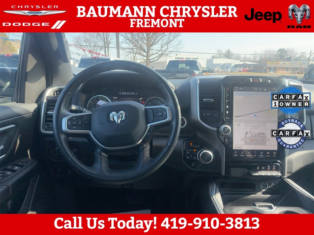 CALL.{419-332-8291}{1-877-394-1162}, 115V Auxiliary Power Outlet, 12" Touchscreen Display, 2nd Row In Floor Storage Bins, 3 Rear Seat Head Restraints, 4 Way Front Headrests, 400W Inverter, 4G LTE Wi-Fi Hot Spot, 9 Amplified Speakers w/Subwoofer, Accent Color Door Handles, Accent Color Premium Power Mirrors, Air Conditioning ATC w/Dual Zone Control, All R1 High Radios, All Radio Equipped Vehicles, Anti-Spin Differential Rear Axle, Apple CarPlay, Auto-Dimming Exterior Driver Mirror, Auto-Dimming Rear-View Mirror, Big Horn Badge, Big Horn Level B Equipment Group, Black Exterior Mirrors, Black Exterior Truck Badging, Black Headlamp Bezels, Black Interior Accents, Black Painted Exterior Mirrors Caps, Black Premium Power Mirrors, Body Color Front Bumper, Body Color Rear Bumper w/Step Pads, Bucket Seats, Center Console Parts Module, Class IV Receiver Hitch, Cluster 7.0" TFT Color Display, Connected Travel & Traffic Services, Connectivity - US/Canada, Convex Wide-Angle Exterior Mirror Insert, Deluxe Cloth Bucket Seats, Disassociated Touchscreen Display, Dual Exhaust w/Black Tips, Exterior Mirrors Courtesy Lamps, Exterior Mirrors w/Heating Element, Exterior Mirrors w/Supplemental Signals, For Details, Visit DriveUconnect.com, For More Info, Call 800-643-2112, Front Fog Lamps, Front Seat Back Map Pockets, Full Length Floor Console, Global Telematics Box Module (TBM), Glove Box Lamp, Google Android Auto, GPS Antenna Input, GPS Navigation, HD Radio, Heated Front Seats, Heated Steering Wheel, Integrated Center Stack Radio, Integrated Voice Command w/Bluetooth, LED Footwell Lighting, Manual Adjust 4-Way Front Passenger Seat, Media Hub w/2 Charge Only USBs, Night Edition, ParkSense Front/Rear Park Assist w/Stop, Power 2-Way Driver Lumbar Adjust, Power 8-Way Driver Seat, Power Adjustable Pedals, Power-Folding Mirrors, Quick Order Package 23Z Big Horn, Radio: Uconnect 5 Nav w/12.0" Display, RAM Grille Badge - Black, Rear 60/40 Folding Seat, Rear Center Armrest, Rear Dome w/On/Off Switch Lamp, Rear Power Sliding Window, Rear Window Defroster, Remote Start System, Security Alarm, SiriusXM Radio Service, SiriusXM Satellite Radio, SiriusXM w/360L, Sun Visors w/Illuminated Vanity Mirrors, Universal Garage Door Opener, USB Host Flip, Wheels: 20" x 9.0" Premium Paint/Polished, 4-Wheel Disc Brakes, 48V Belt Starter Generator, 6 Speakers, ABS brakes, Air Conditioning, Alloy wheels, AM/FM radio, Brake assist, Bumpers: chrome, Cloth Bench Seat, Compass, Delay-off headlights, Driver door bin, Dual front impact airbags, Dual front side impact airbags, Electronic Stability Control, Emergency communication system: SiriusXM Guardian, Front anti-roll bar, Front Center Armrest w/Storage, Front reading lights, Front wheel independent suspension, Fully automatic headlights, Heated door mirrors, Illuminated entry, Leather steering wheel, Low tire pressure warning, Manufacturer's Statement of Origin, Occupant sensing airbag, Outside temperature display, Overhead airbag, Overhead console, Panic alarm, ParkView Rear Back-Up Camera, Passenger door bin, Passenger vanity mirror, Power door mirrors, Power steering, Power windows, Radio data system, Radio: Uconnect 3 w/5" Display, RAM Grille Badge - Chrome, Rear anti-roll bar, Rear seat center armrest, Rear step bumper, Remote keyless entry, Speed control, Split f
