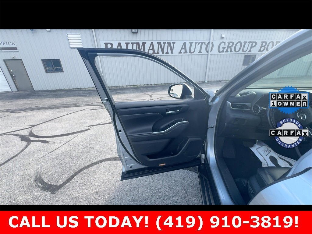 Odometer is 16855 miles below market average! CARFAX One-Owner.Celestial Silver Metallic 2022 Toyota Highlander XLE AWD 4D Sport Utility 3.5L V6 DOHC 8-Speed Automatic AWDONE OWNER CLEAN CARFAX!!Car shopping is sometimes inconvenient and stressful, and we want to take the hassle out of this all-too-common experience. If youâre interested in more convenience, less frustration and a process that works efficiently to meet your needs as a customer. Al BAUMANN AUTO GROUP. The Best Price Up Front Cash Offers For Any Trade-In Multiple Financing Quotes In Minutes A Team Of Dedicated Salespeople.CALL,419-332-8236 or {1-866-330-3601}, AWD, 3.003 Axle Ratio, 3rd row seats: split-bench, 4-Wheel Disc Brakes, 6 Speakers, ABS brakes, Air Conditioning, Alloy wheels, AM/FM radio: SiriusXM, Apple CarPlay/Android Auto, Auto High-beam Headlights, Auto-dimming Rear-View mirror, Automatic temperature control, Brake assist, Bumpers: body-color, Delay-off headlights, Driver door bin, Driver vanity mirror, Dual front impact airbags, Dual front side impact airbags, Electronic Stability Control, Emergency communication system: Safety Connect with 1-year trial, Exterior Parking Camera Rear, Four wheel independent suspension, Front anti-roll bar, Front Bucket Seats, Front Center Armrest, Front dual zone A/C, Front fog lights, Front reading lights, Fully automatic headlights, Garage door transmitter: HomeLink, Heated door mirrors, Heated Front Bucket Seats, Heated front seats, Illuminated entry, Knee airbag, Leather Shift Knob, Low tire pressure warning, Occupant sensing airbag, Outside temperature display, Overhead airbag, Overhead console, Panic alarm, Passenger door bin, Passenger vanity mirror, Power door mirrors, Power driver seat, Power Liftgate, Power moonroof, Power passenger seat, Power steering, Power windows, Radio: Audio Plus, Rear air conditioning, Rear anti-roll bar, Rear reading lights, Rear window defroster, Rear window wiper, Reclining 3rd row seat, Remote keyless entry, Roof rack: rails only, Security system, SofTex Seat Trim, Speed control, Speed-sensing steering, Split folding rear seat, Spoiler, Steering wheel mounted audio controls, Tachometer, Telescoping steering wheel, Tilt steering wheel, Traction control, Trip computer, Turn signal indicator mirrors, Variably intermittent wipers, Wheels: 18 Machined-Finish Alloy, AWD.